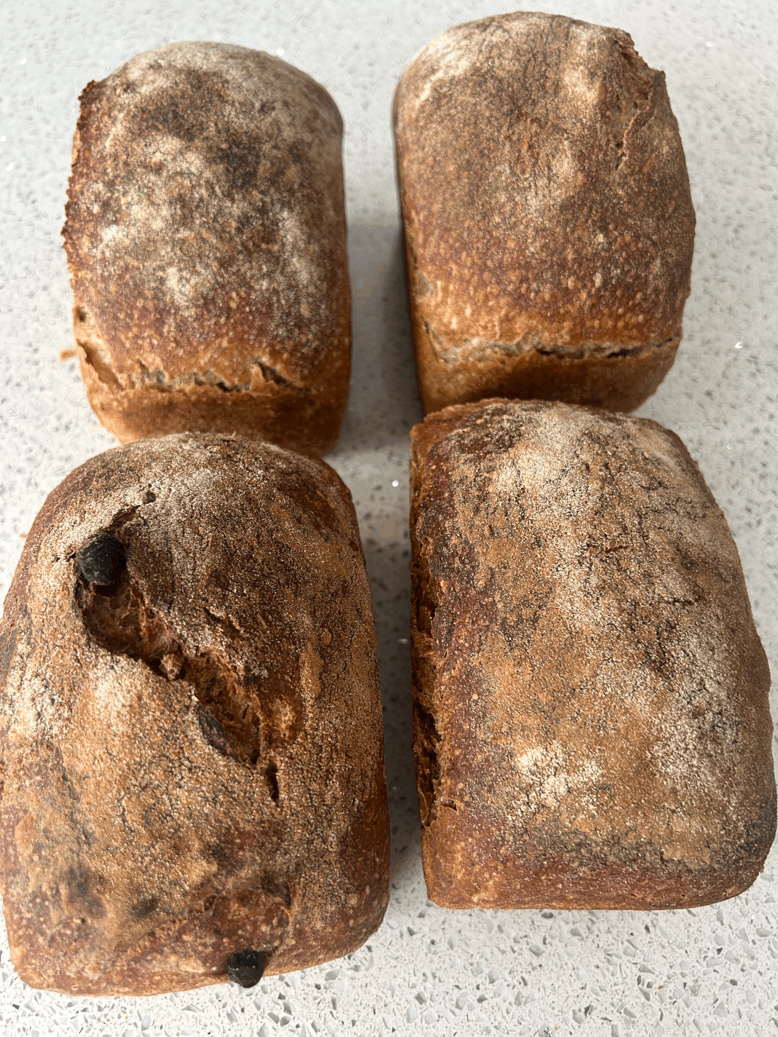 We are a home based bakery with limited capacity so all bread is baked for pre-orders. Sometimes bread shape and color may vary, the weight in the description relates to the pre-baked dough weight. Some of the items might not be available for a specific day or for a specific pick-up time due to the baking process.